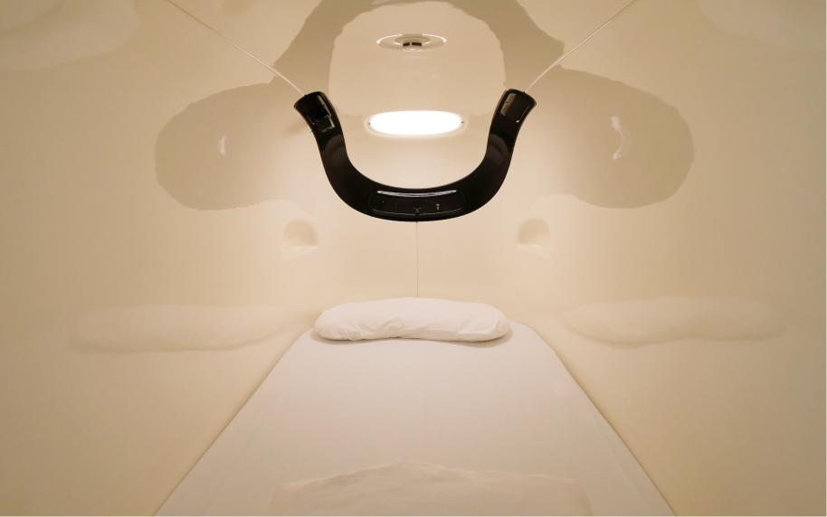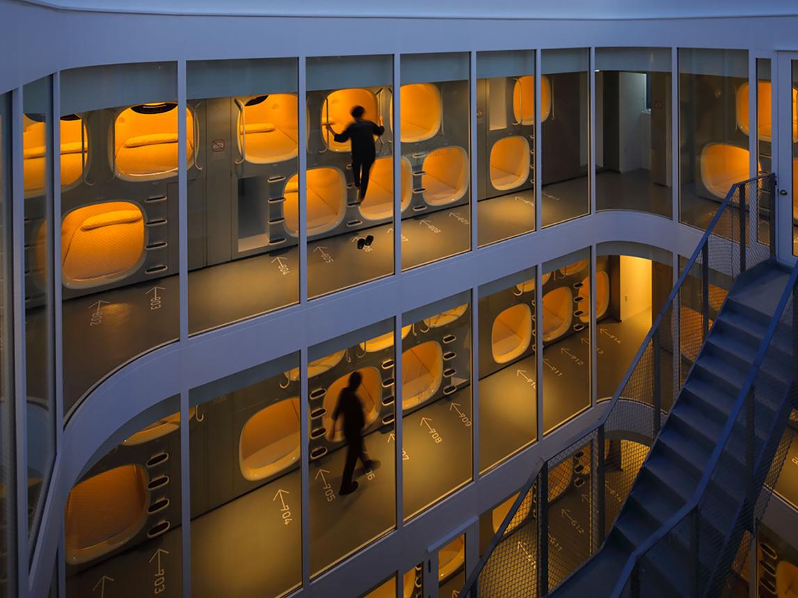 Минимализм, доведённый до совершенства. Здесь всё подчинено идее «9 часов»: 1 час на душ, 7 часов на сон и 1 час на подготовку. Капсулы чистые, футуристичные и очень удобные.
