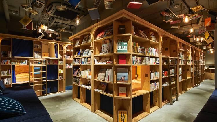 Мечта интроверта и книголюба. Здесь можно буквально спать среди книжных полок. Атмосфера уютная, а концепция — уникальная.