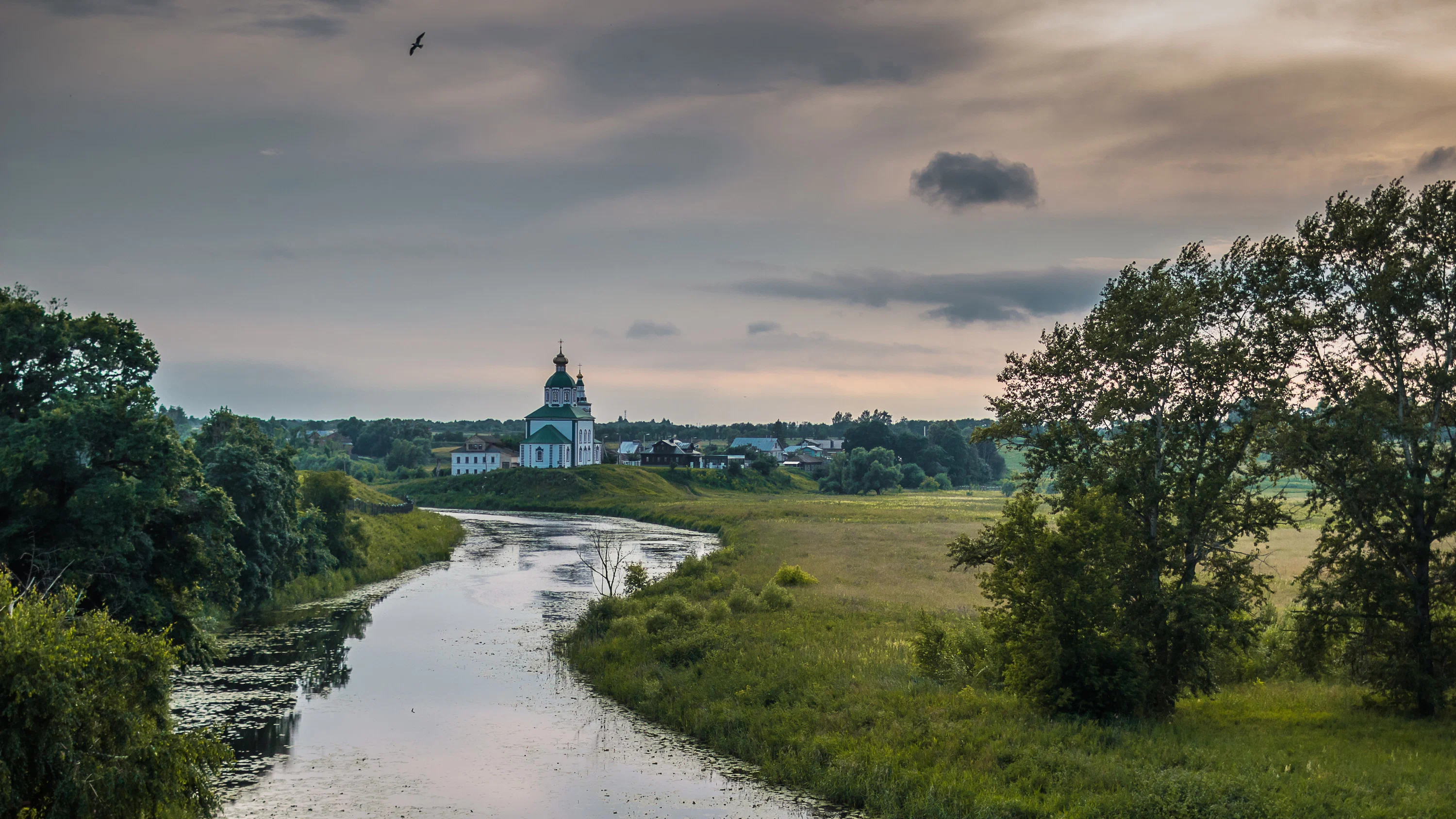 Не ставьте его в конец дня после десяти остановок. Суздаль нужно прожить. Лучше выехать из Костромы без лишних отклонений, приехать засветло и отдать остаток дня плюс утро следующего дня именно ему. Здесь работают не отдельные точки, а целая ткань места: монастыри, деревянная архитектура, речка Каменка, виды с пригорков, колокольный ритм и очень редкое ощущение цельности. Многие города Золотого кольца красивы фрагментами, а Суздаль хорош полностью.